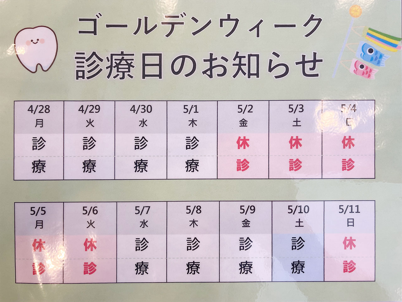 [ゴールデンウィーク診療日のお知らせ]